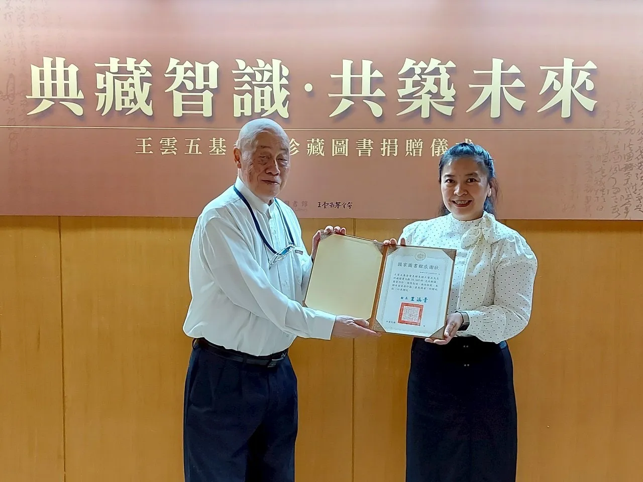 為推動知識永續與閱讀普及,王雲五基金會董事長王春申捐贈一萬八千餘冊精選圖書予國家圖書館,捐贈儀式於2025年6月6日下午在國家圖書館舉行,由國家圖書館王涵青館長親自接收捐贈,並頒贈感謝狀,表彰基金會對文化資產保存與教育推廣的深遠貢獻。